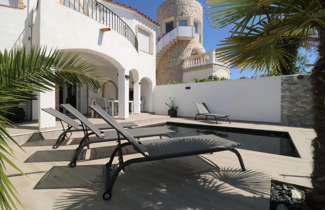 Valira 20D - Belle Villa Avec Piscine Sur Canal Empuriabrava ligt op 2 km afstand van de Santa Maria de Castelló d'Empúries (kerk) en nodigt gasten uit om te ontspannen op een terras.